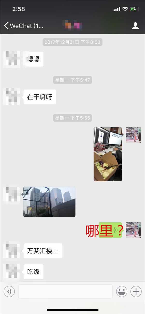 女生這里又給了一個很有潛臺詞的話。她發的是萬菱匯樓上的一個照片。暗示的是,我離你挺近的,可以約。