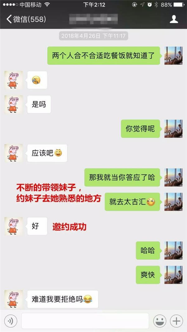 兄弟們可以通過這個案例,學會和妹子應該聊什么樣的話題,如何順勢升級關系,再如何正確的邀約妹子。