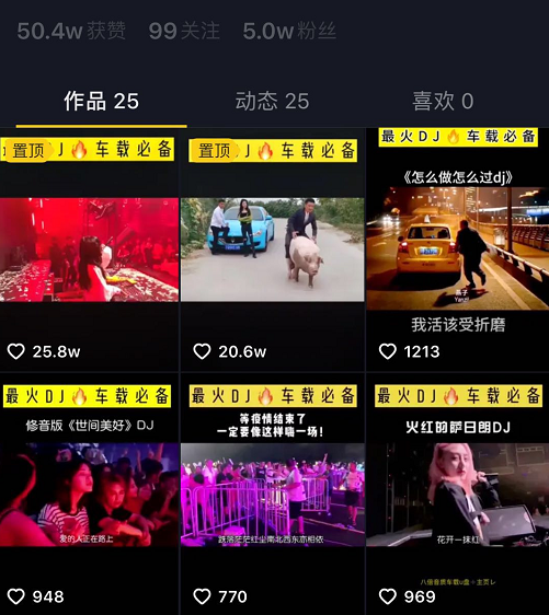 可以看到每個視頻點贊都很高,轉發和評論也不少,按照抖音的推薦機制,這類視頻很容易火起來。